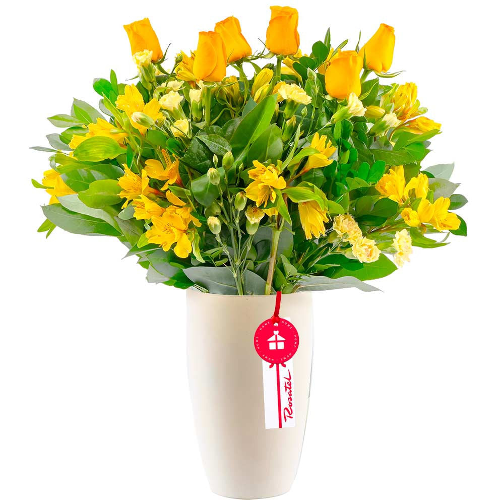 Florero con Clavelinos y Flores Amarillas