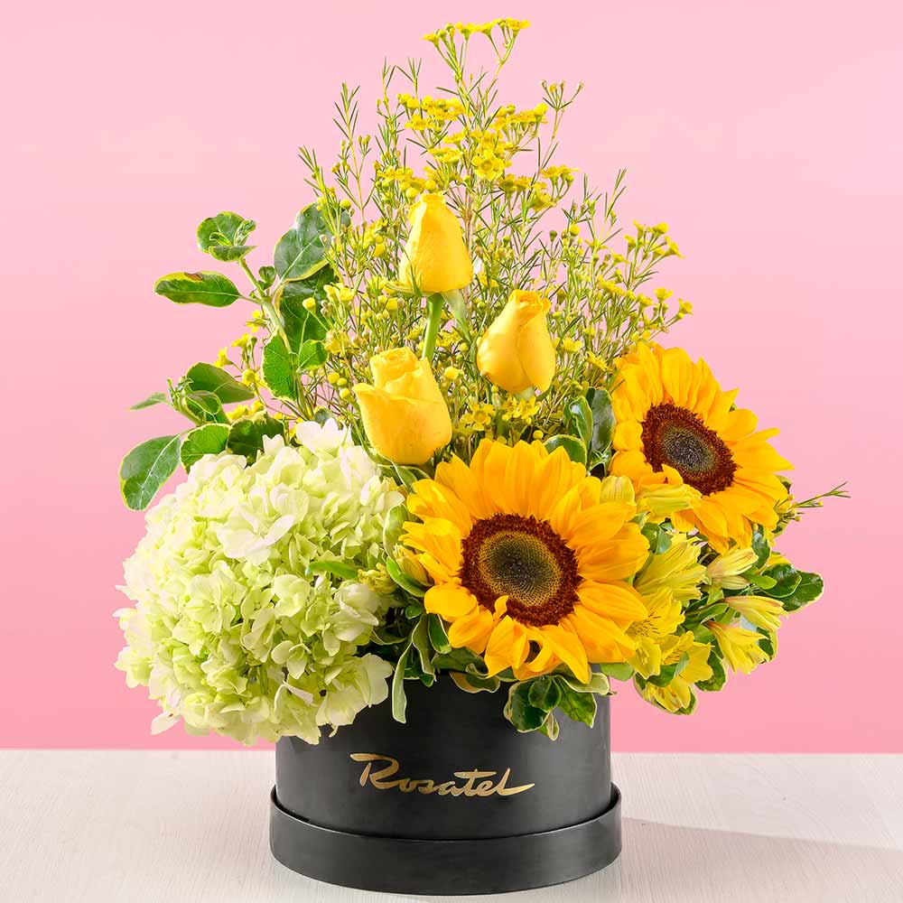 Sombrerera Crema Mediana con Girasoles y Hortensias