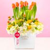 Sombrerera Crema Mediana con 24 Tulipanes Variados