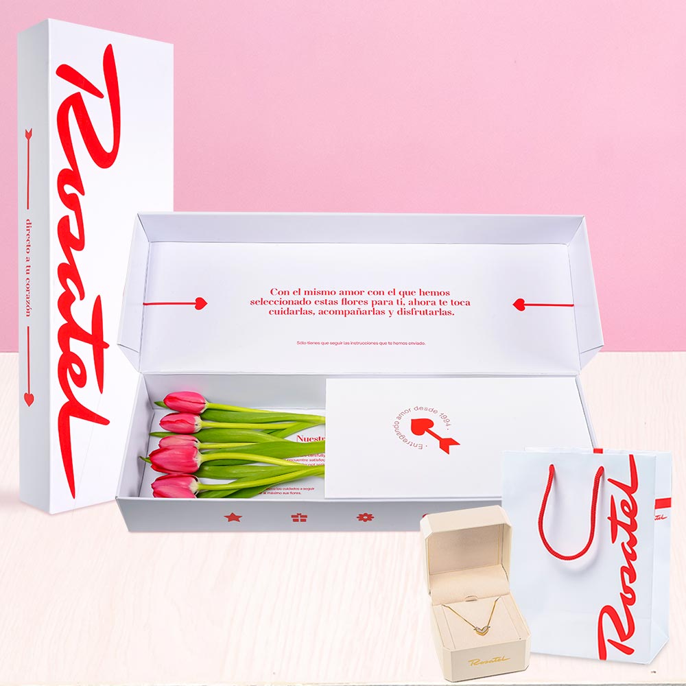 Caja 9 Tulipanes Rojos y Caja Corazón Bom