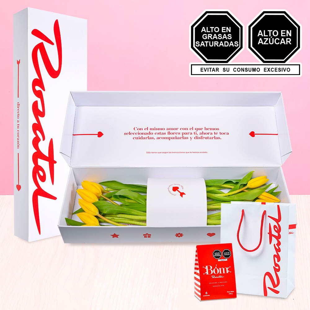 Caja con 15 Tulipanes Amarillos y Caja Bag Bom Rosatel