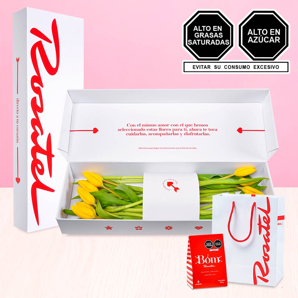 Caja con 15 Tulipanes Amarillos y Caja Bag Bom Rosatel