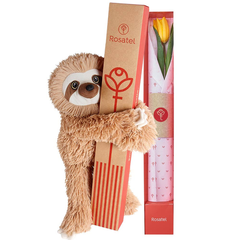 Caja con 9 Tulipanes Amarillos y Caja Bag Bom Rosatel