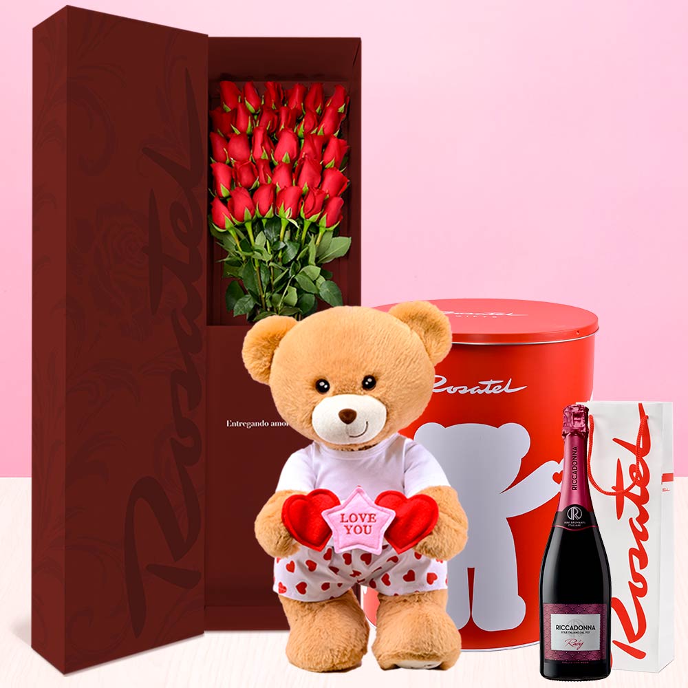 Caja Prime Rosatel 30 Rosas y Chocolates Ferrero