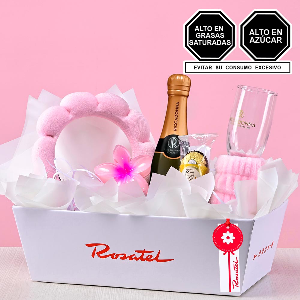 Sorprende con un detalle completo que combina celebración, dulzura y autocuidado. Esta Caja Pack Rosatel incluye Riccadonna Prosecco 200 ml. (Italia), ideal para brindar en momentos especiales, acompañado de una copa elegante que realza la experiencia.