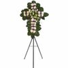 Cruz Pequeña con 12 Rosas, Pompos, Crisantemos y Flores en Trípode