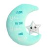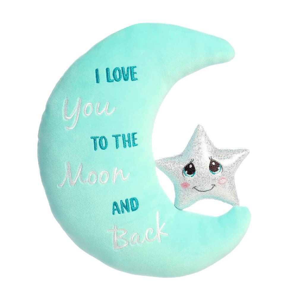 Este peluche es una luna creciente grande y soñadora con una pequeña estrella brillante adjunta. El peluche presenta I Love You To The Moon and Back bordado en la luna y los característicos ojos en forma de lágrima de Precious Moments en la estrella.