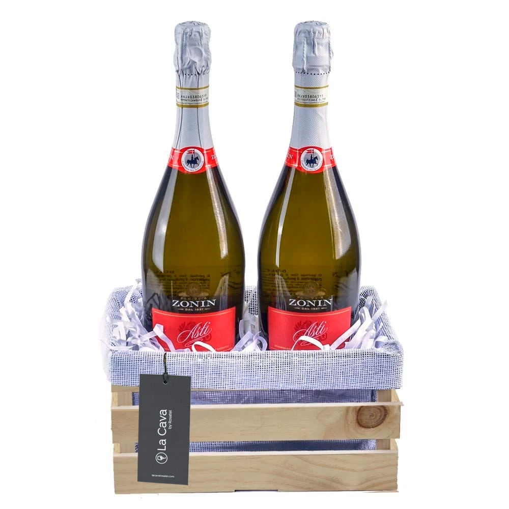 Jaba de madera con 2 Asti Zonin 750 ml. cada una (Italia).