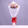 Ramo de flores secas con rosas artesanales rosada y rosada fuerte, gipsofilia seca rosada, jaspia seca blanca, cardo y cola de conejo color natural envuelto delicadamente con cinta decorativa.