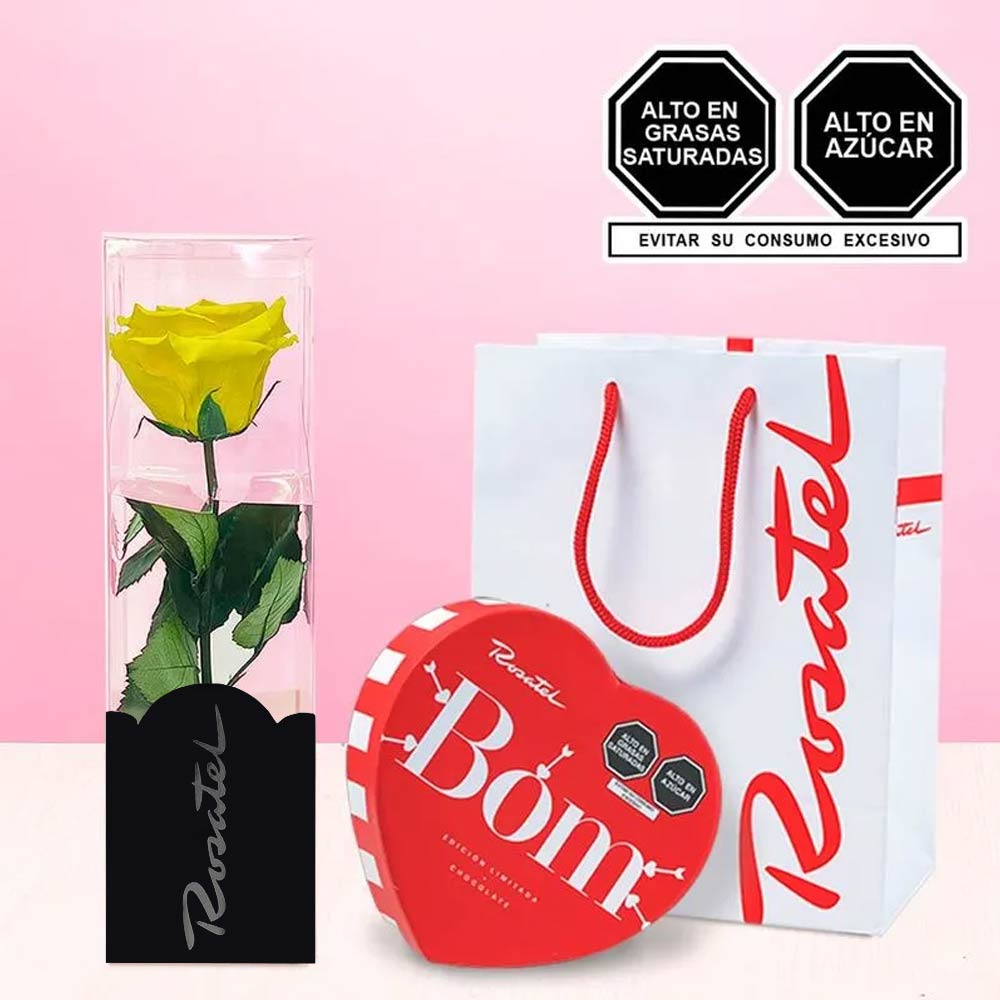 Rosa Preservada Amarilla y Caja Bag Bom Rosatel