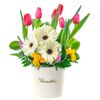 Sombrerera Crema con Tulipanes Rojos y Gerberas