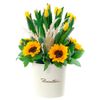 Sombrerera Crema Mediana con 6 Tulipanes y Girasoles