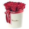 Sombrerera crema grande (20 cms.) con 20 rosas rojas decorada con cinta.