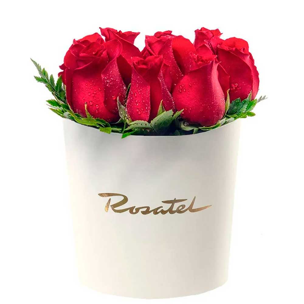Sombrerera Crema Mediana con 15 Rosas Rojas