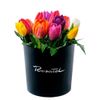 Sombrerera Negra Mediana con 12 Tulipanes Variados