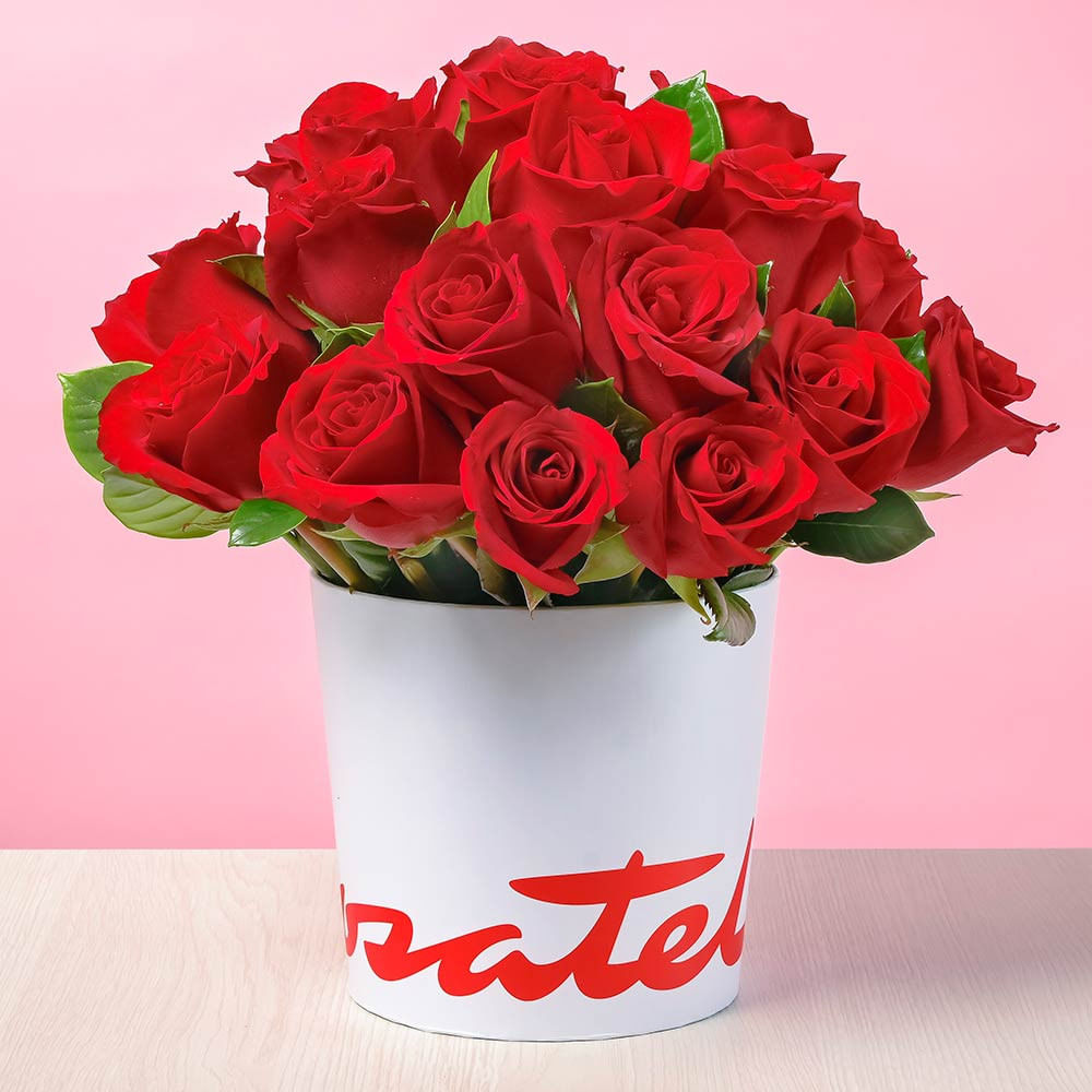 Sombrerera Crema Grande con 20 Rosas Rojas