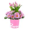 Sombrerera Rosada Mediana con 6 Tulipanes Hortensia y Flores